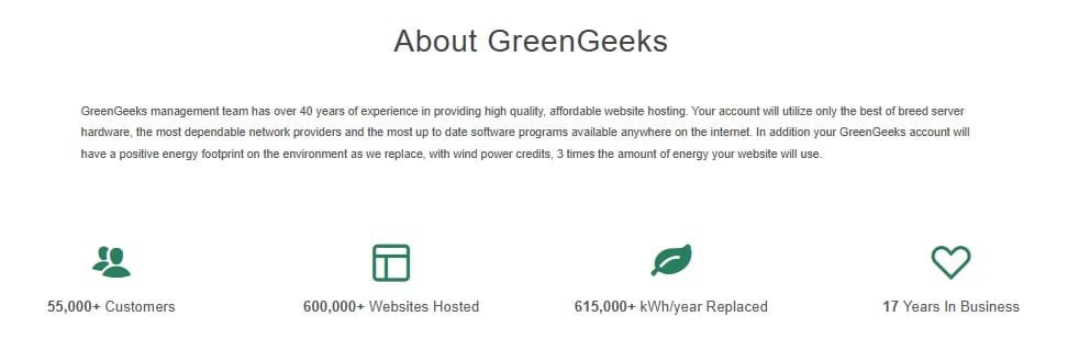 Launched in 2008, GreenGeeks has grown into one of the best green hosting providers, hosting over 600,000 websites and gaining a reputation for being a trusted, sustainable hosting choice. Whether you’re a blogger, a business owner, or building an e-commerce store, they offer plans to suit a variety of needs, all while supporting eco web hosting practices.